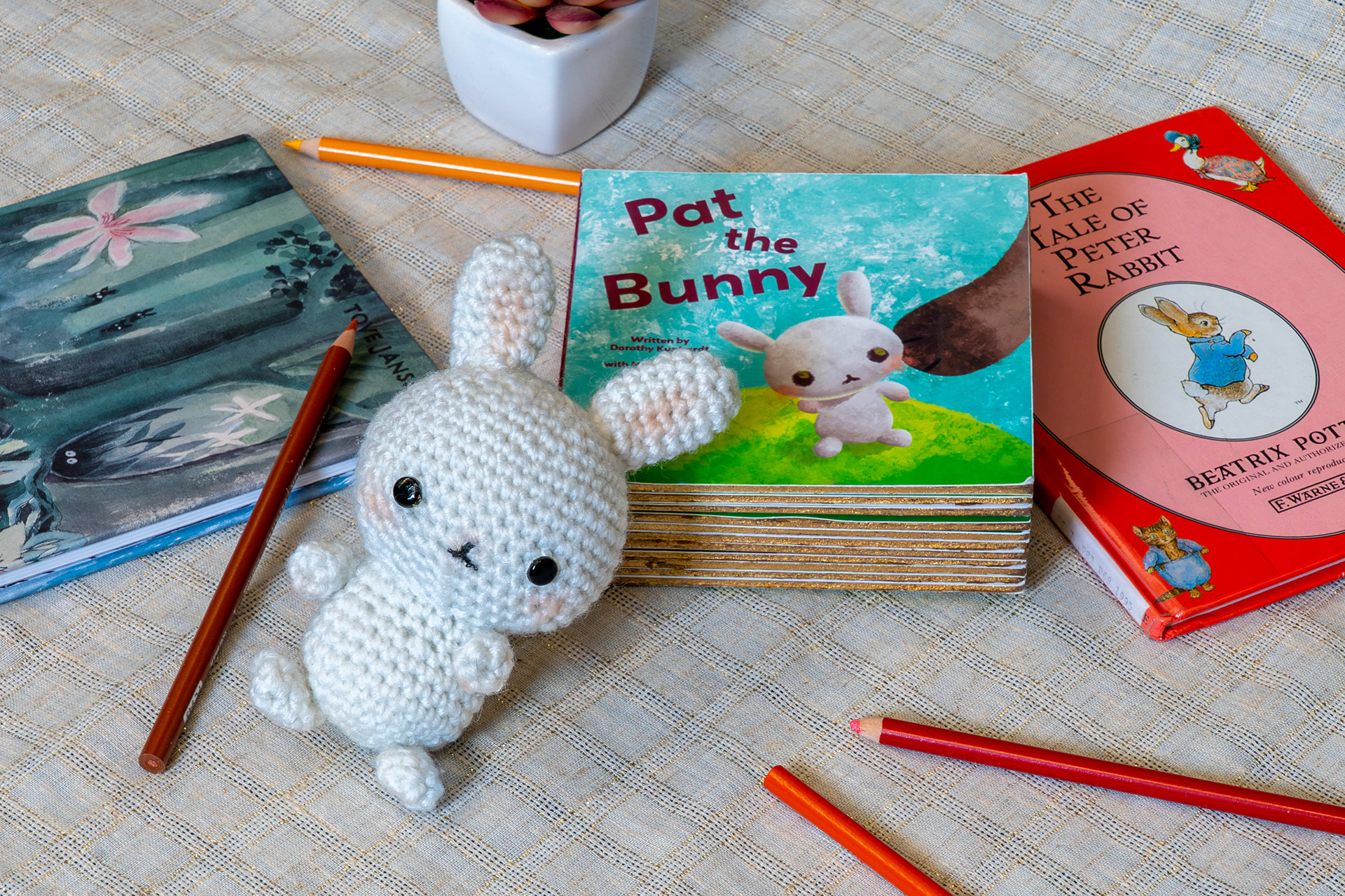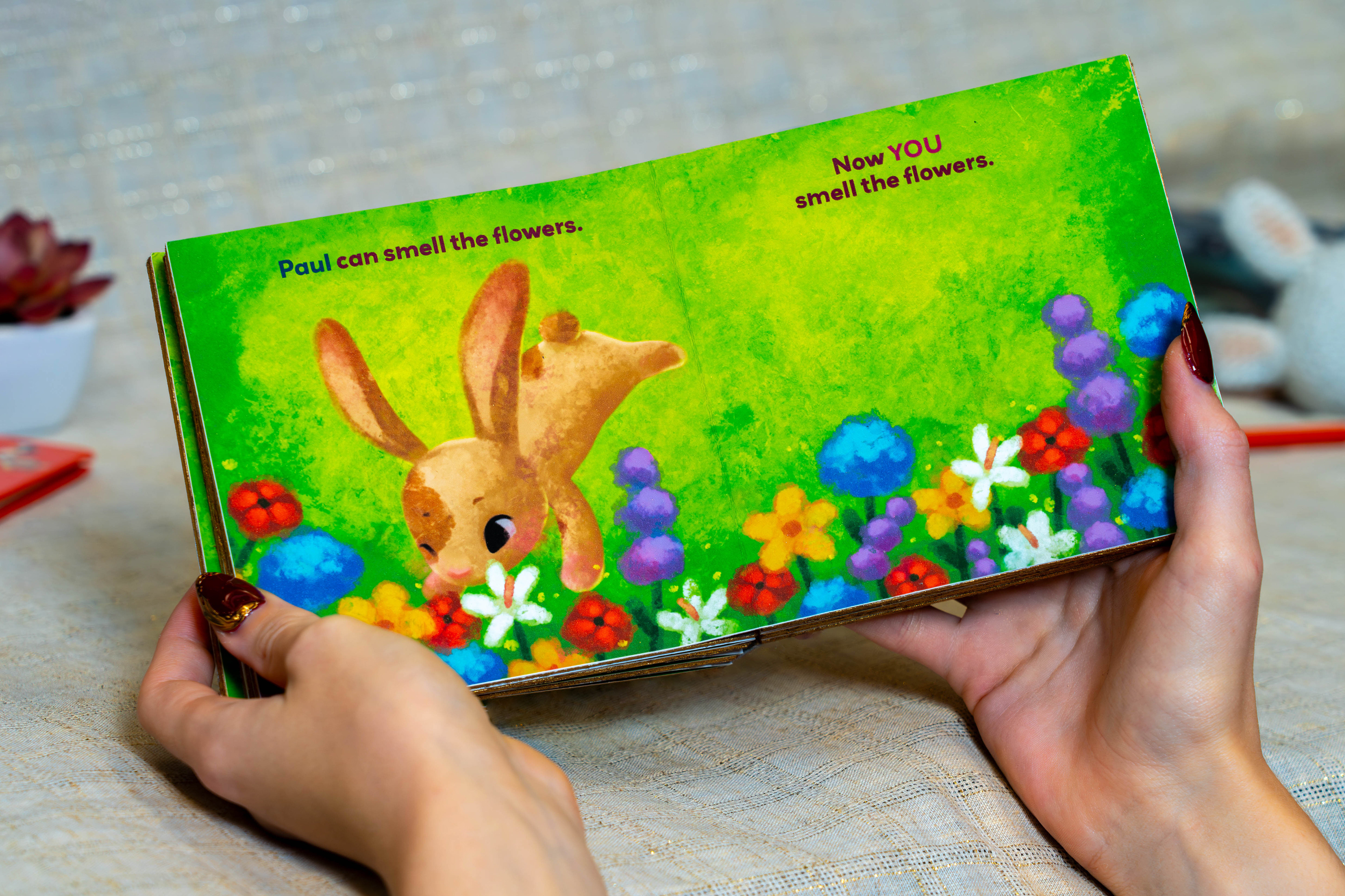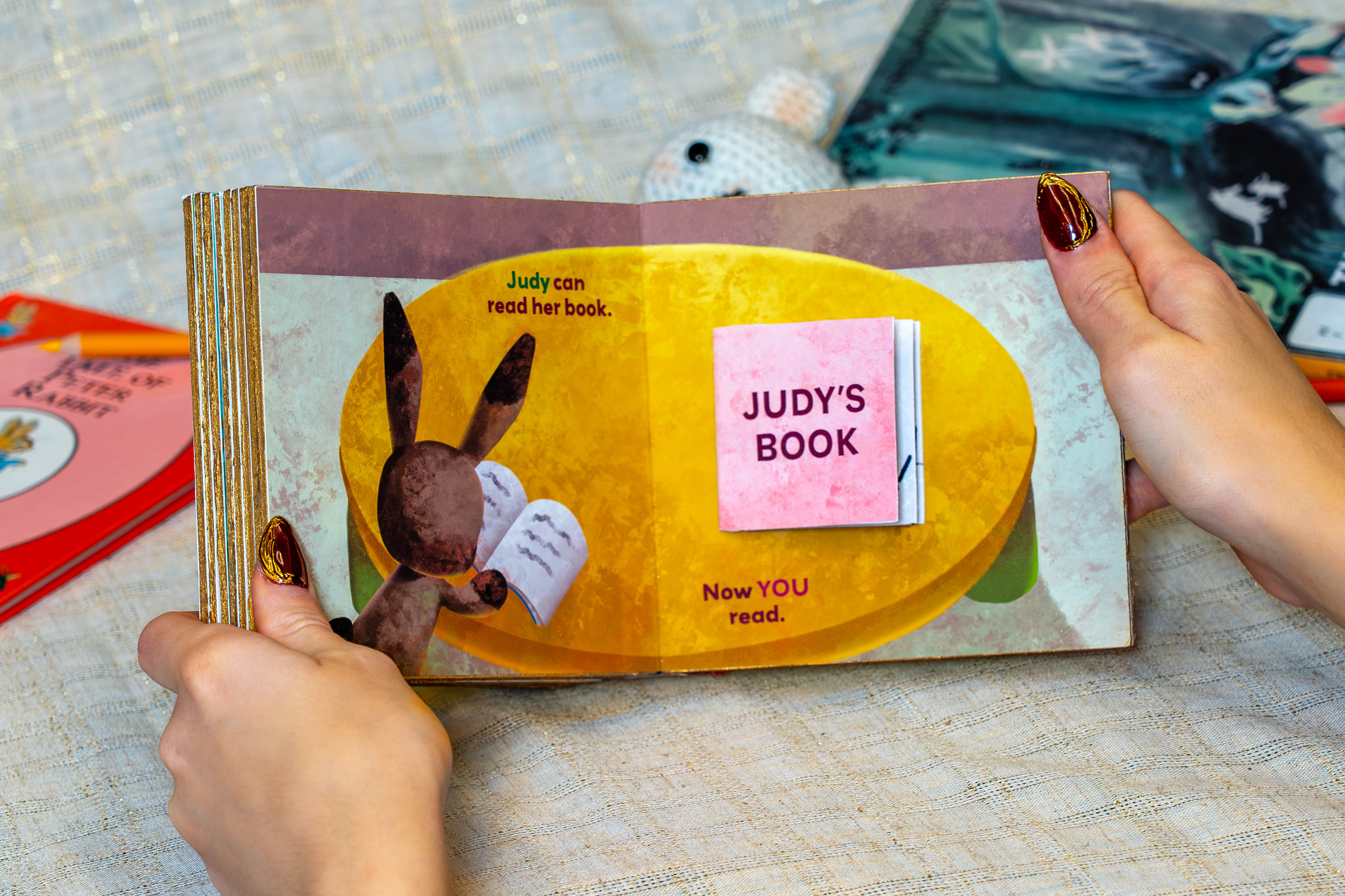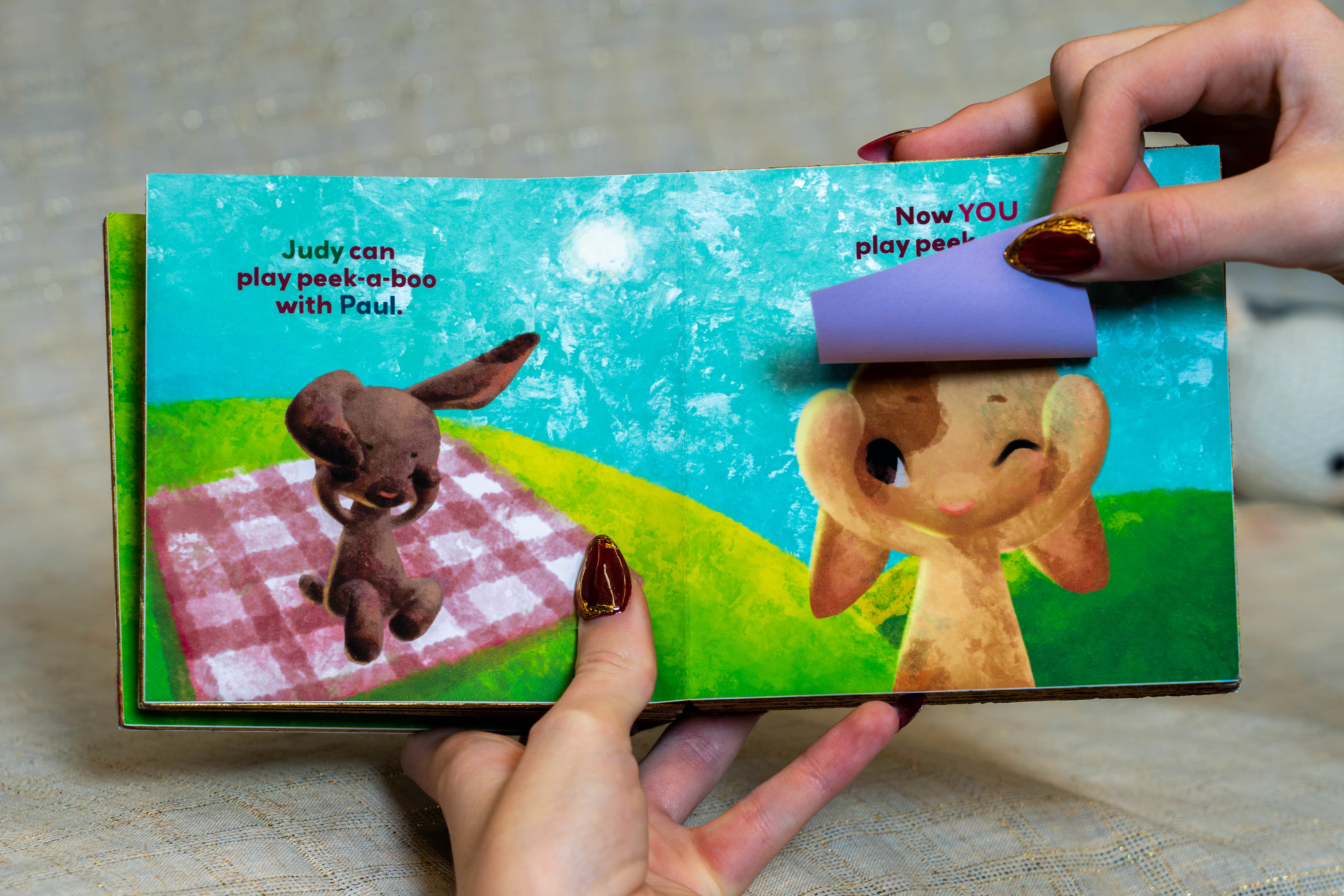 Making the characters bunnies also resolves common misunderstanding of the book. Many new readers interpret “Pat the Bunny” as a name, not an action. They end up confused to see the story is about human children, and that the bunny is just one feature. Incorporating a new bunny-world eases the gateway into the story.
