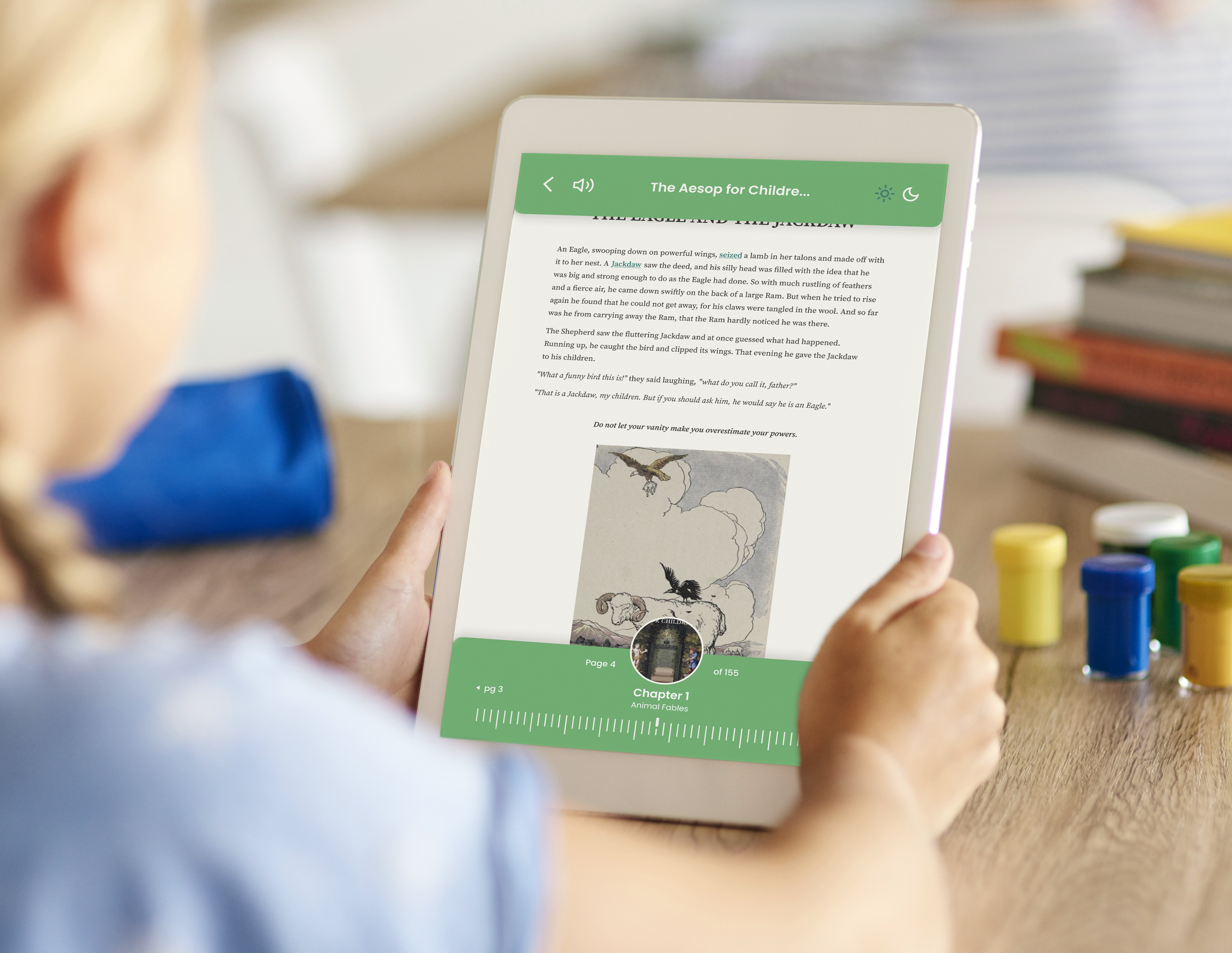 As an app designed to help young students read, the design needs to be stimulating, but not distracting.