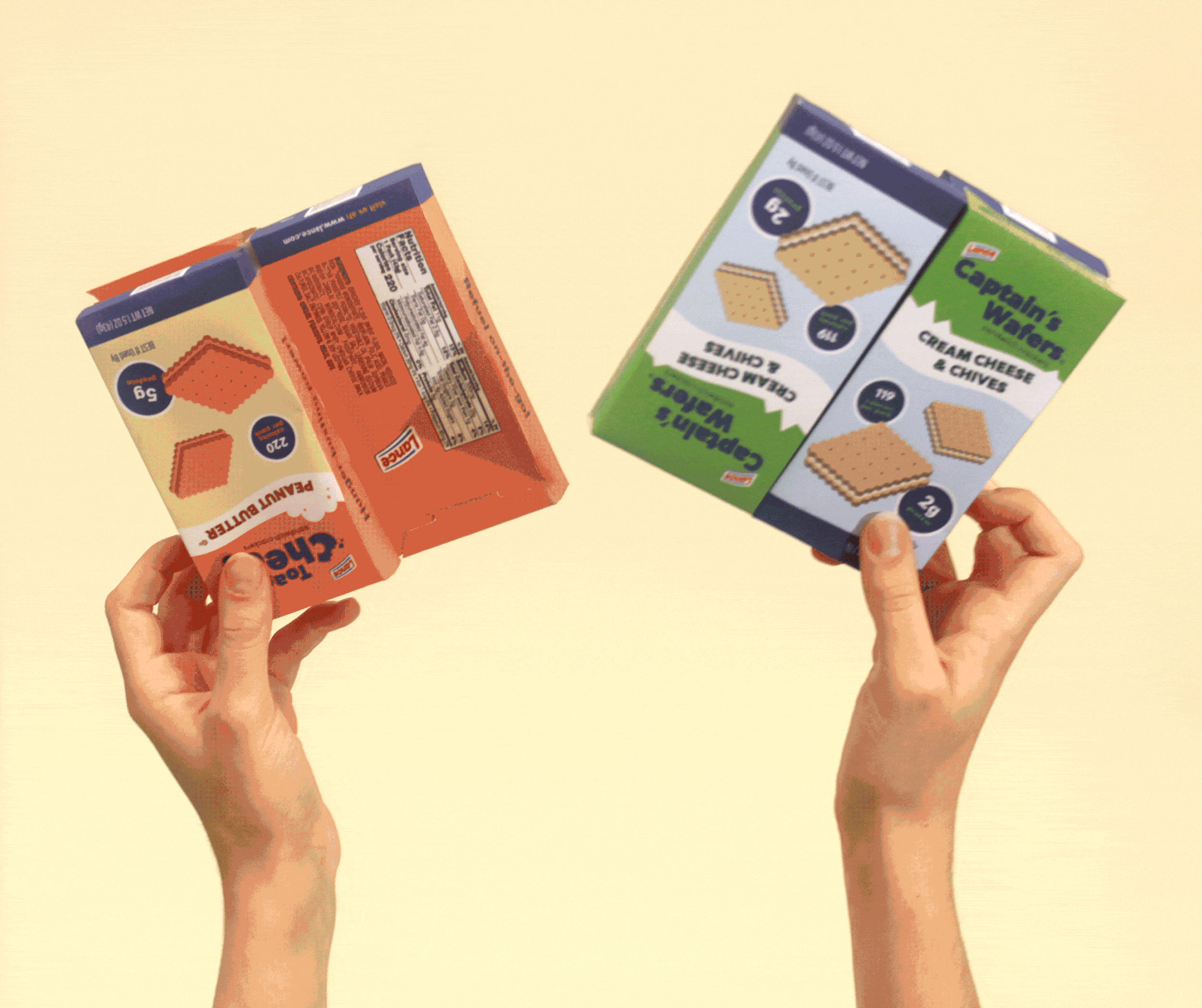 Lance sandwich crackers are loved as a portable snack, but the existing package design lacks sustainability: each pack is individually wrapped in thin, plastic film, leaving excess waste that isn’t biodegradable and is hard to recycle.