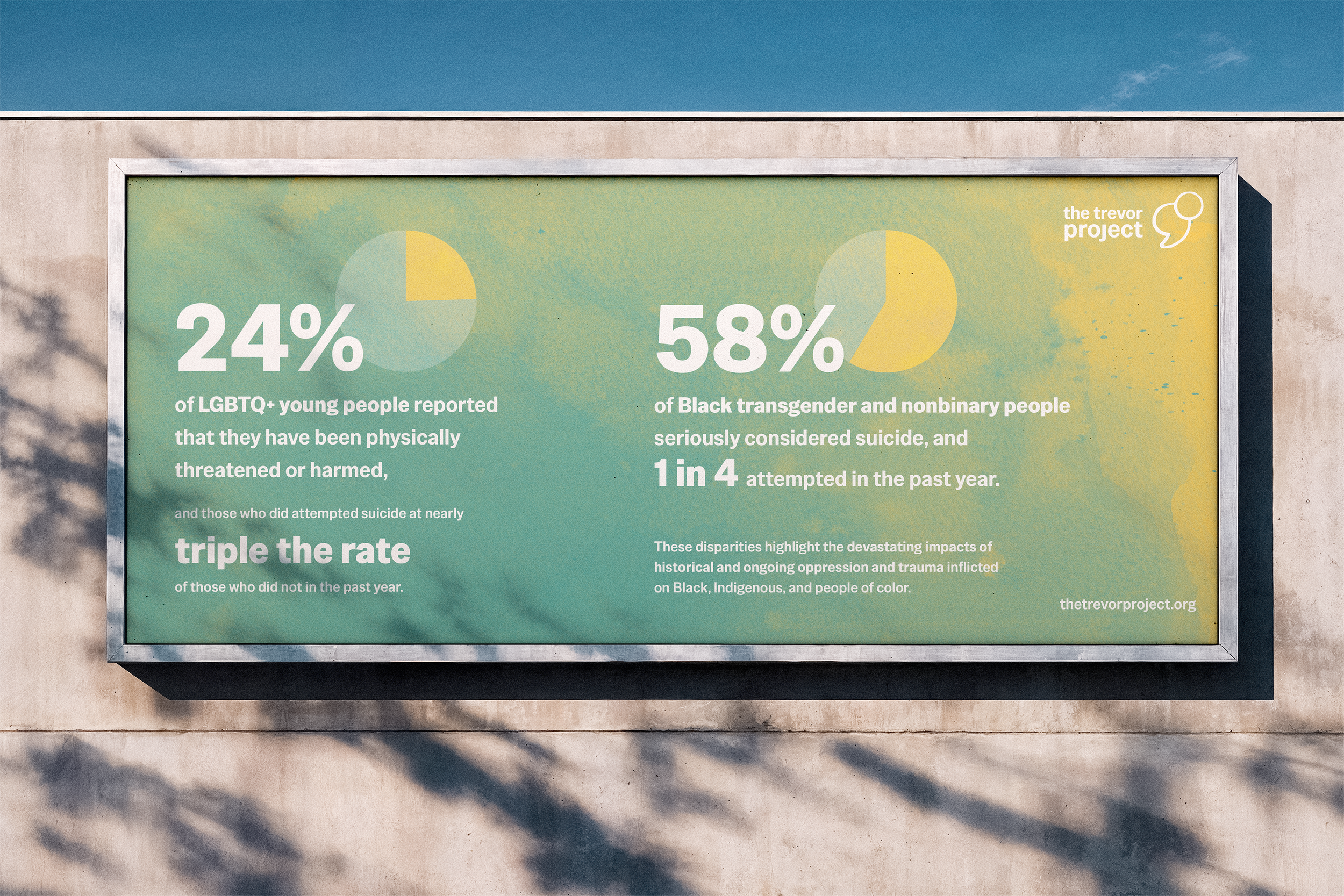 Develop a refreshed brand identity for The Trevor Project, a non-profit suicide prevention organization that provides 24/7 crisis support services, research, and advocacy for LGBTQ+ young people.