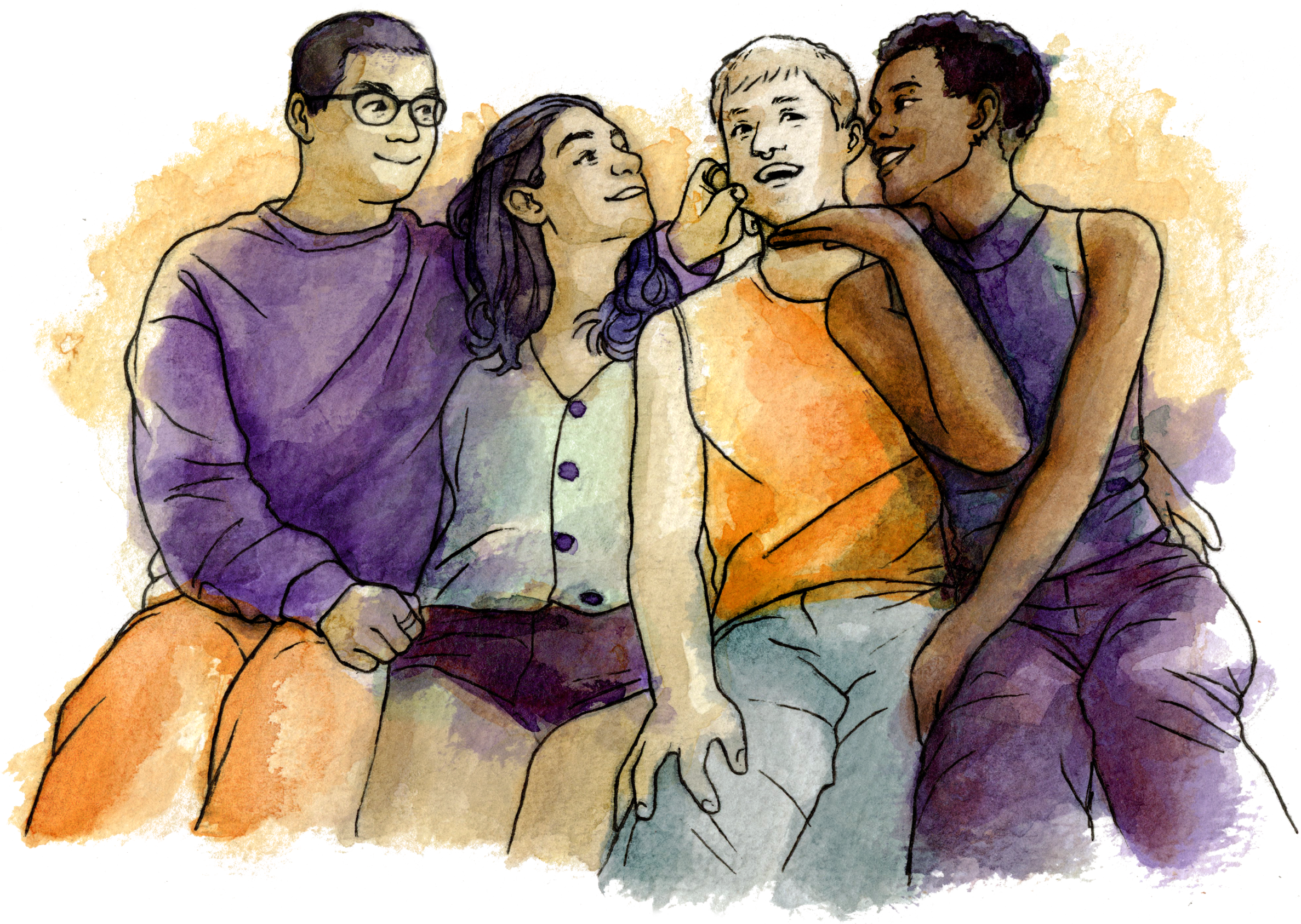 More importantly, this decision was guided by the idea that gender and sexual identity are fluid; you don’t have to fit in a box to be loved, and you don’t have to have it all together to be supported by The Trevor Project. Colors intentionally leak outside the lines to portray that.
